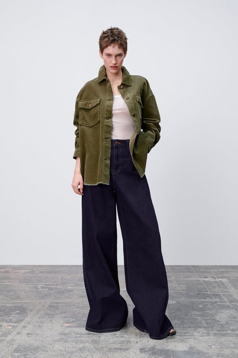 Corduroy Overshirt with Frayed Hem